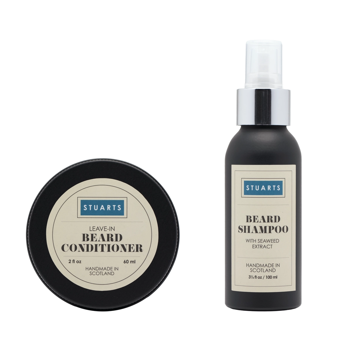 Shampoo for head hair can be too strong for a beard. It can strip away the oils that we are trying to preserve. STUARTS Beard Shampoo is formulated to cleanse effectively without stripping the beard of its natural oils. Made with seaweed extract and tea tree oil, it will leave the coarsest beard feeling soft.